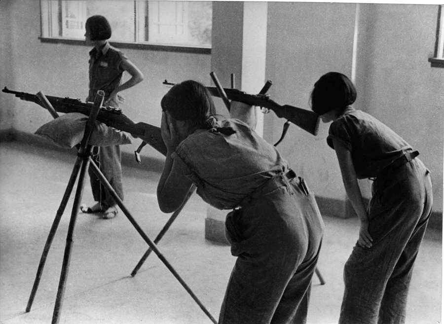 Young Chinese girls practice shooting. (Photo/Chinadaily.com.cn)