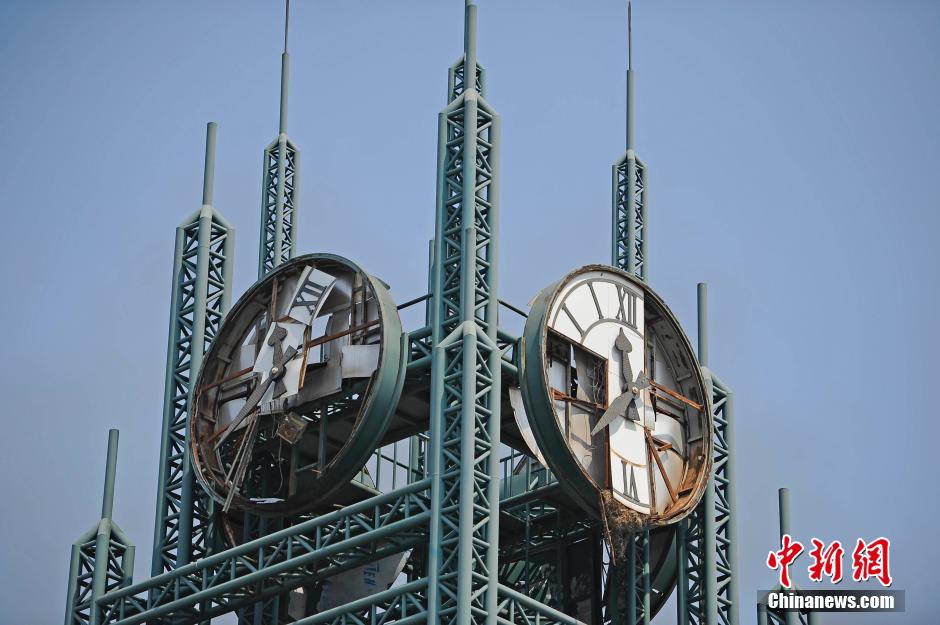 This clock stopped working at exactly 11:40pm when the massive Tianjin explosions occurred on Wednesday night, due to explosion shockwaves. The time when the tragedy takes place is forever sealed in this man-made machine. (Photo/CNS)