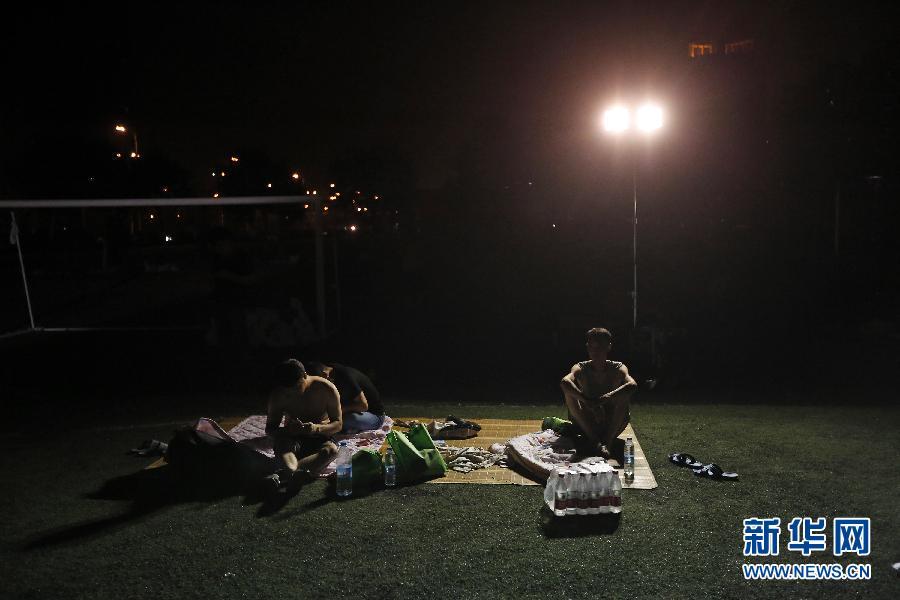 People rest in the playground of a local primary school that has been transformed into a shelter for the victims of Tianjin blasts. (Photo/Xinhua)