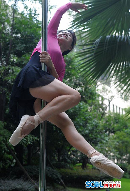 Dai Dali, 70, practices pole dancing in Chengdu city, capital of southwest China's Sichuan province. (Photo/ scol.com.cn)