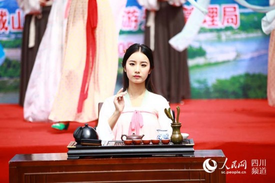 Chen Kebei, from Dujiangyan Campus of Sichuan Agriculture University, is dressed up in traditional Han Chinese costume in Libing Cultural Tourism Festival in Dujiangyuan. She has become an Internet hit for her elegant feature. (Photo/people.cn)