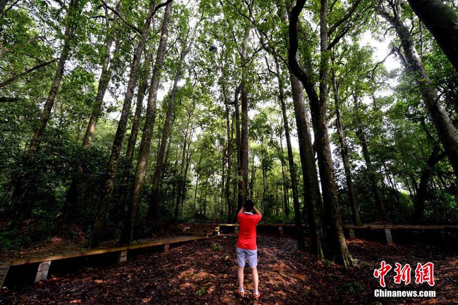 On Aug. 12, people visit the nanmu forest in Shuinan village, Fujian. (Photo by Wang Dongming / Chinanews)