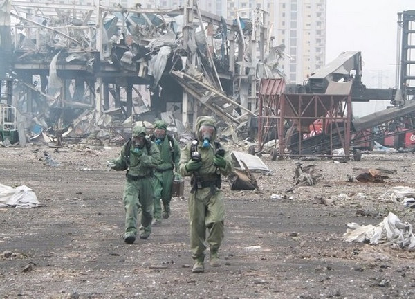 Military Chemical Specialists Enter Tianjin Blasts Site