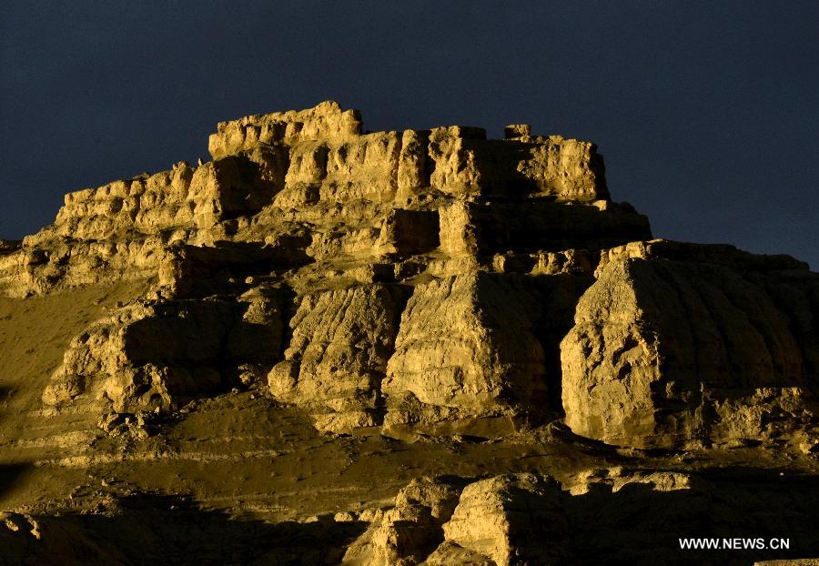 Photo taken on Aug. 8, 2015 shows a part of the Zhada Earth Forest illuminated in the sunrise in Zhada County of Ngari Prefecture, southwest China's Tibet Autonomous Region. (Xinhua/Liu Dongjun)