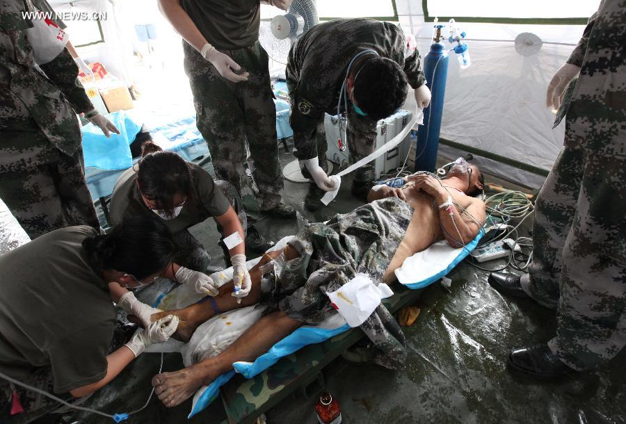 TIANJIN, Aug. 15 (Xinhua) -- A man in his fifties was rescued from the Tianjin blasts site on Saturday afternoon.