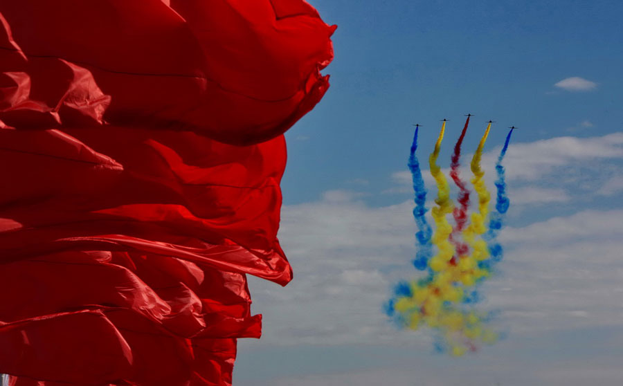 A group of photos show the Chinese Air Force in the National Day Military Parades in 2009. (Qiao Tianfu/People.cn)
