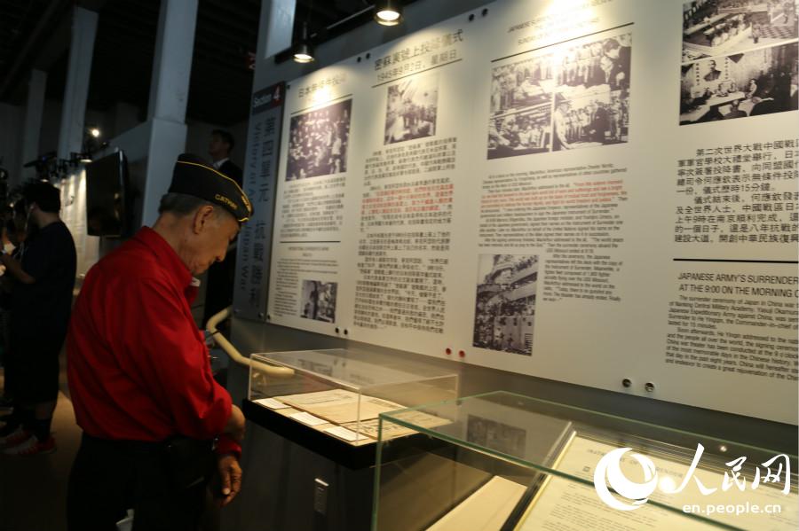 A veteran stares at the exhibits. (People's Daily Online/Han Shasha)