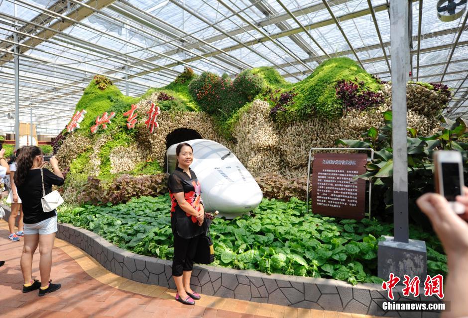 On Aug. 17, a ginger mountain attracts people’s attention in the exhibition garden. The pronunciation of ginger mountain as “Jiang Shan” is the same as the meaning of “country” in Chinese. (Xinhua / Zhang Yao)