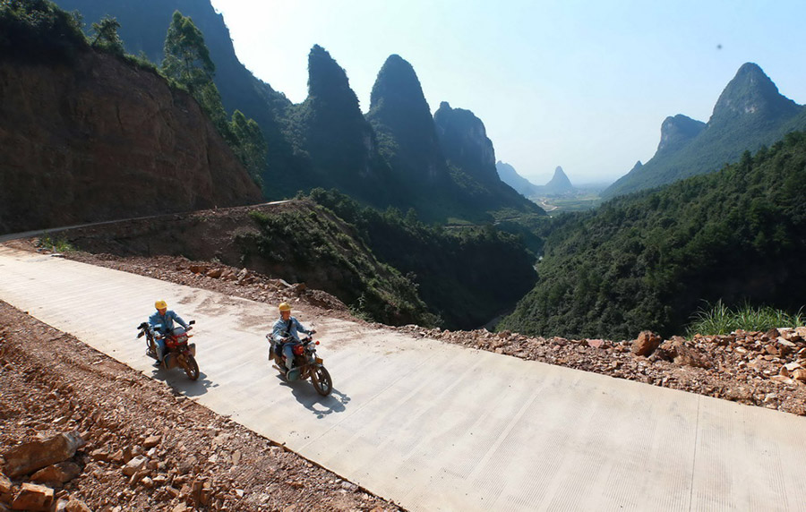 Beauties give cheongsam show on 2,000-meter-high cliff
