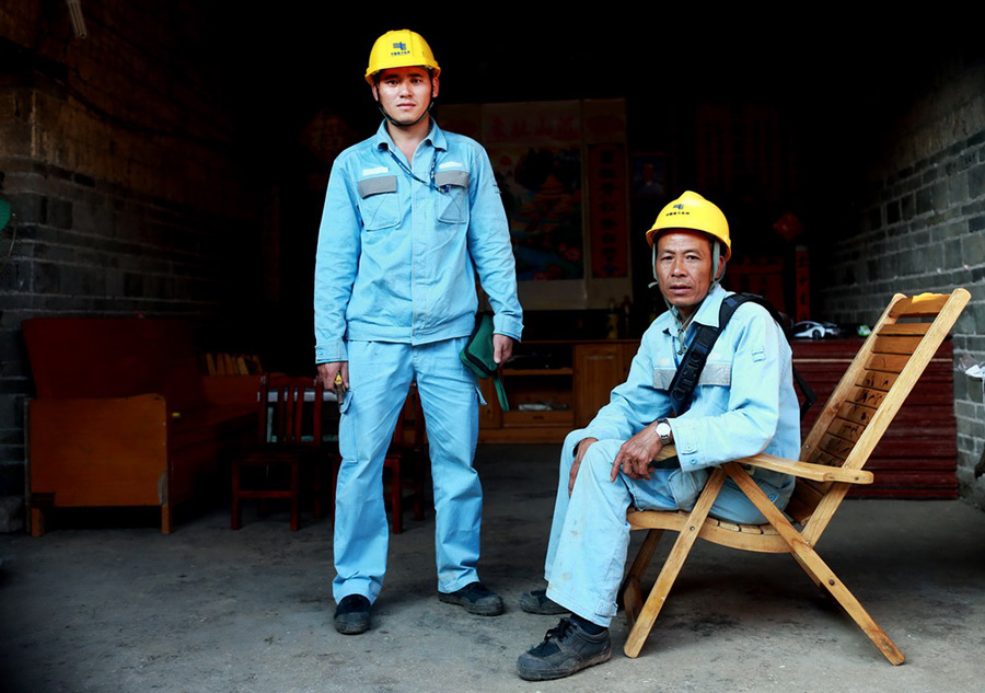 A group photo of Luo Zhenxi (right) and his son Luo Yan bin (left) taken on Aug. 12. (Xinhua / Liu Jiaoqing)