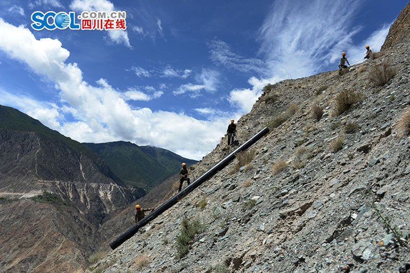 Waterway is being built on the cliffs along the Jinsha River of southwest China's Sichuan province. (Photo/ scol.com.cn)