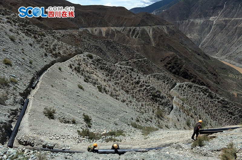 Waterway is being built on the cliffs along the Jinsha River of southwest China's Sichuan province. (Photo/ scol.com.cn)