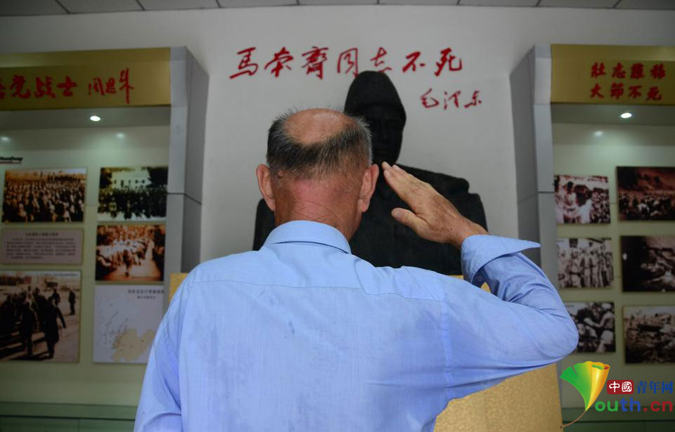 Cai salutes to the statue of Ma Benzhai. (Photo/Youth.cn)