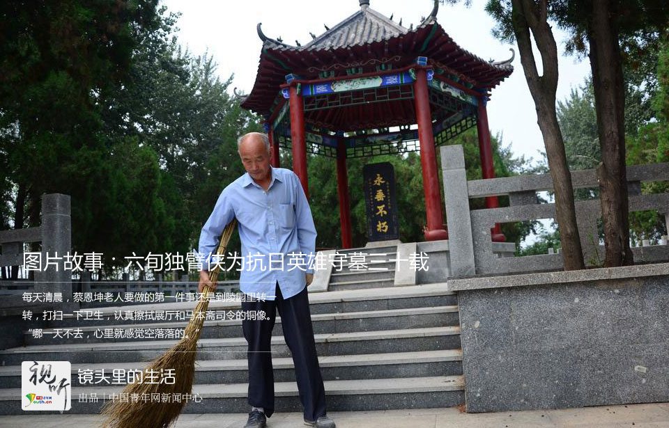 When Cai was a young boy, he had heard all the stories about anti-Japanese hero Ma Benzhai. After he grew up, he became a soldier too. However, due to an accident at work, he lost his left arm and came back to the village committee to work. In 1985, when he heard there was a job opening for guarding Ma Benzhai’s cemetery, he volunteered.