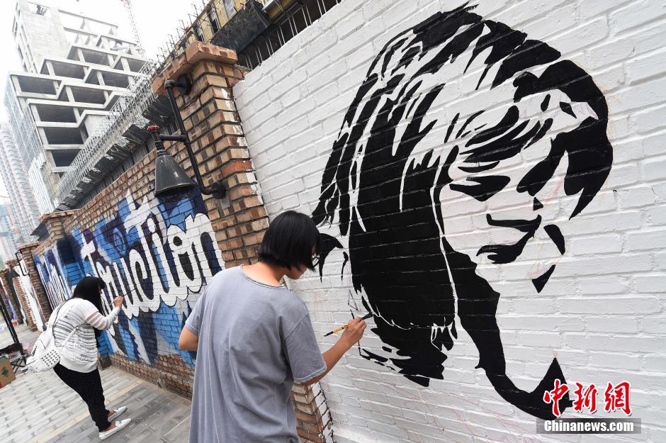 Graffiti enthusiasts paint on a 200-meter wall in Taiyuan, north China’s Shanxi province on Aug. 18, 2015. (CNS/Wu Junjie)