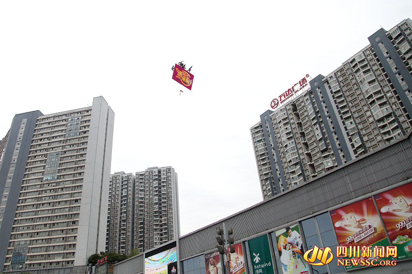 Zhao Liqian, who will be a freshman majoring in flight attendant in Sichuan Southwest Vocational College of Civil Aviation, received her admission letter from the drone in a square near her home.
