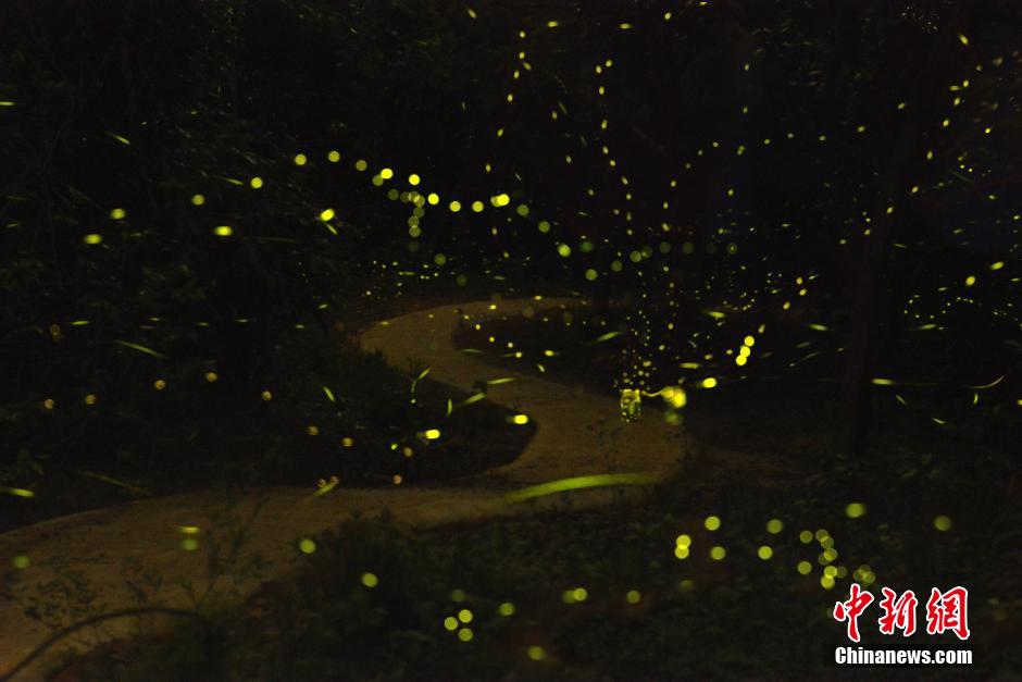 To celebrate the “Chinese Valentine”, a firefly-themed party is held in Nanhu Amusement Park in Guangzhou, south China’s Guangdong province on Aug. 18, 2015. Thousands of fireflies created a romantic atmosphere at night, which attracted many visitors. (CNS/Zhong Yanming)