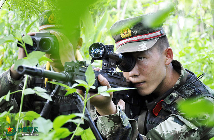 Nanning Armed Police Detachment begins to conduct a one-week special training for snipers on Aug. 15, 2015, so as to improve their sniping skills and psychological qualities. (Photo/www.81.cn)