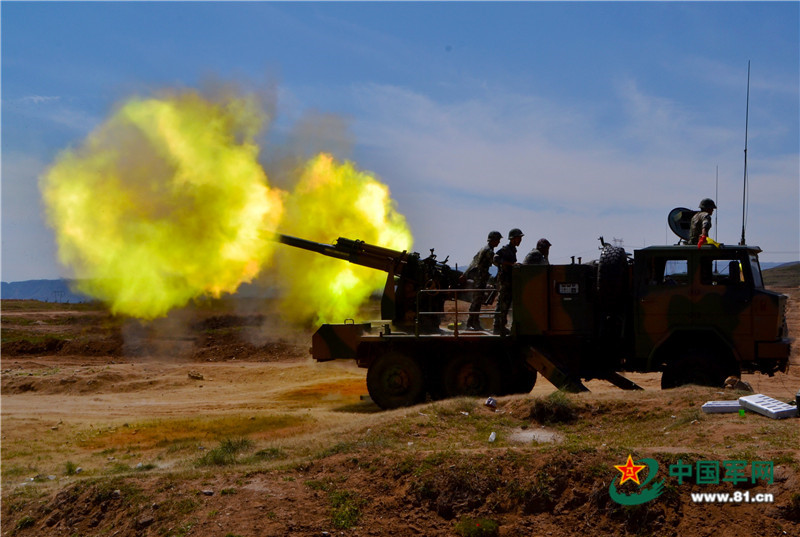 A regiment of PLA Lanzhou Military Region conducts live-fire drill near the foot of Mount Tianshan. Thousands of shells were fired during the 30-hour drill. (81.cn/Dong Hao)
