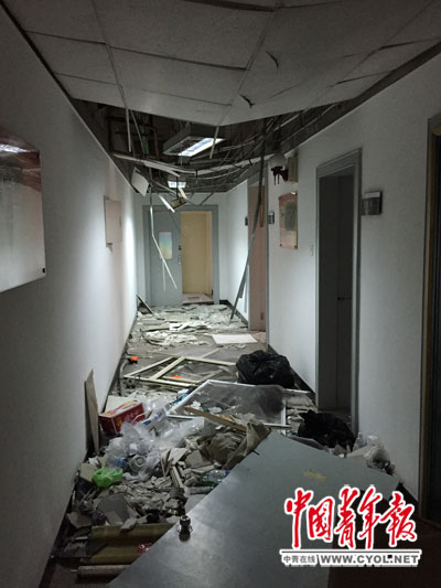 The huge crack on the red gate of the 8th firefighting detachment is just like a crack on the heart of 22-year-old fire fighter Zhang Mengfan. He is the only one left in the detachment after the Tianjin explosion. Of the other 26 firemen, four have been confirmed dead, four are still missing, and the other 18 are all injured and in the hospital.