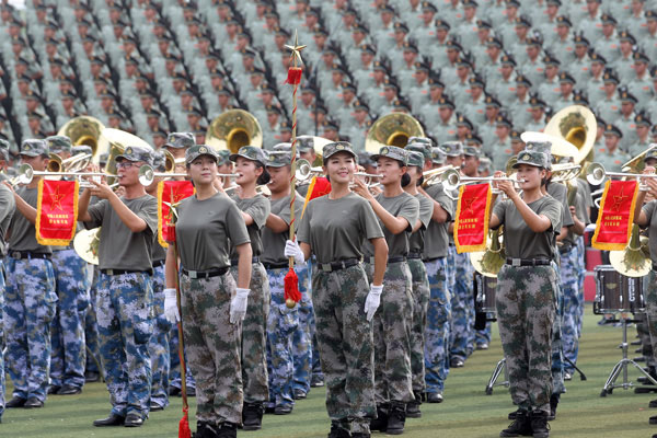 The military band in training. [Photo by Zou Hong/China Daily]