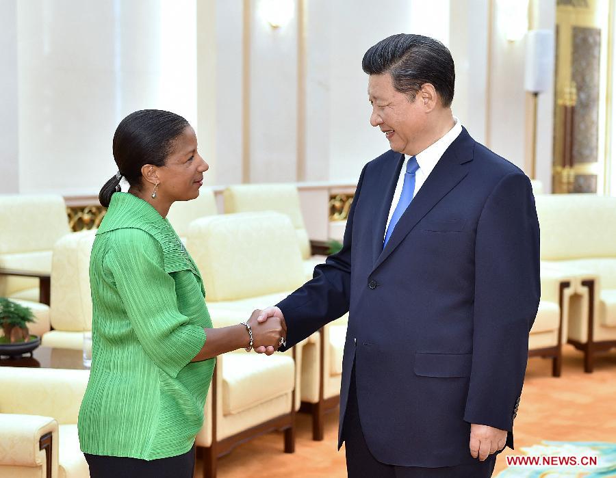 Chinese President Xi Jinping(R) meets with U.S. National Security Advisor Susan Rice in Beijing, capital of China, Aug. 28, 2015. (Xinhua/Li Tao)