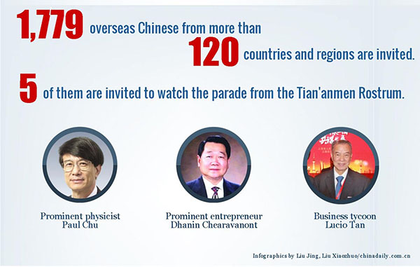 Dr Paul Chin-wu Chu, professor, founding director and chief scientist at the Texas Center for Superconductivity at the University of Houston, is one of the five overseas Chinese in the world - and the only one in the US - invited to view the military parade on Sept 3 from the upstairs of Tiananmen Rostrum in Beijing celebrating victory in WWII.