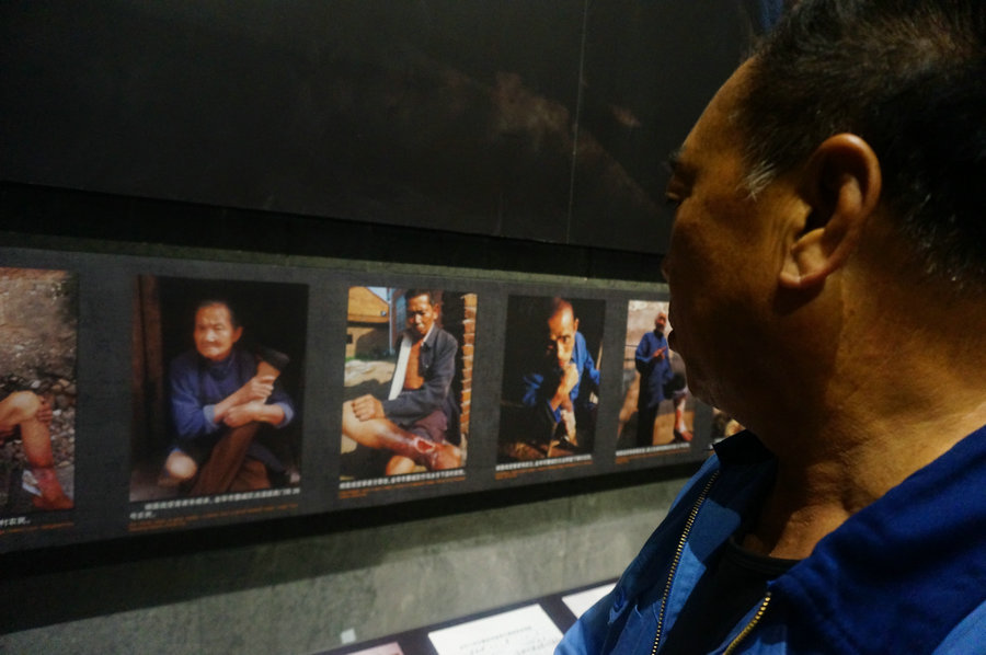 A visitor views the exhibits that show Chinese villagers' suffering from Japanese bacterial weapons. [Photo by He Keyao/chinadaily.com.cn]