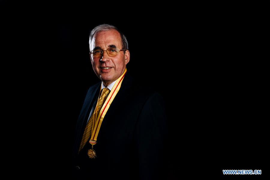 Photo taken on Sept.2, 2015 shows the image of Thomas Rabe, in Beijing, capital of China. Thomas Rabe is the grandson of John Rabe, a German businessman who helped to protect Chinese civilians during the Nanjing Massacre in WWII. Chinese President Xi Jinping on Wednesdaygranted medals to 10 international anti-fascist fighters who fought for China in World War II. (Xinhua/Liu Jinhai)