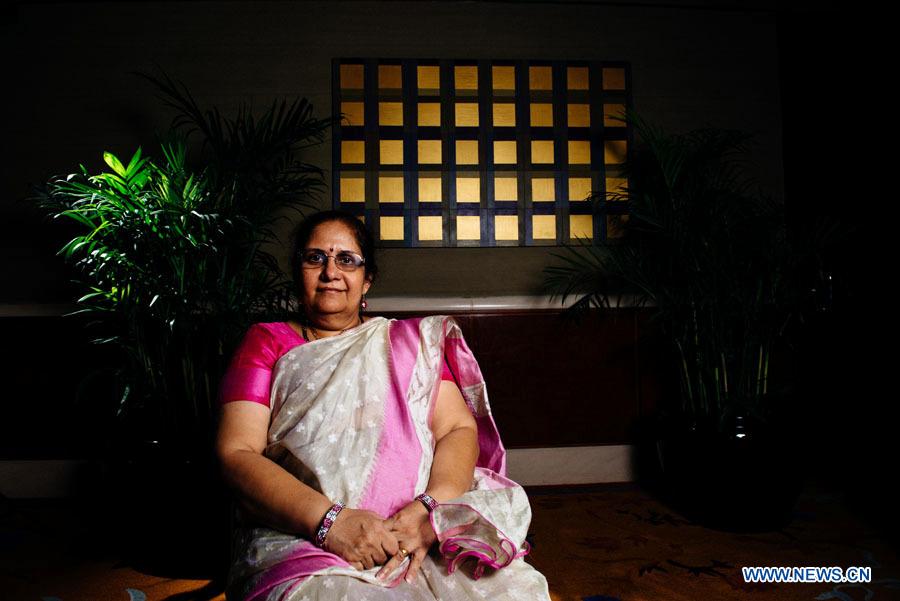 Photo taken on Sept.2, 2015 shows the image of S.Borkar, in Beijing, capital of China.S.Borkar is the niece of Doctor Dwarkanath Kotnis, who came to China in 1938 to provide medical assistance when China fought against the Japanese invasion. He died in China in 1942. Chinese President Xi Jinping on Wednesday granted medals to 10 international anti-fascist fighters who fought for China in World War II. (Xinhua/Liu Jinhai)