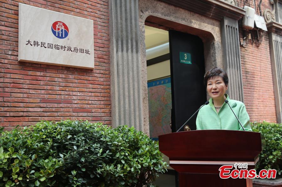 South Korean President Park Geun-hye speaks at a ceremony in Shanghai on Friday where she reopened a historic building used by Korea's provisional government during Japan's 1910-45 colonial rule of the Korean Peninsula. She said the provisional government played a crucial role in helping Koreans restore state sovereignty and the reopening of the building is of great significance(Photo: China News Service/Shen Hai)