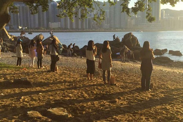 A group of women, aging from 20 to 30, come to the beach in Sam Ka Village of Hong Kong every morning. They take off shoes, put on glasses, set up alarm clock and start to stare at the sun. They believe that through staring at the sun, extra fat in their bodies will be burnt, so they can lose weight.