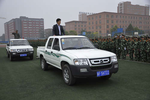 Early in 2011, Zhou Huzhen also reviewed students in a truck. (File photo)