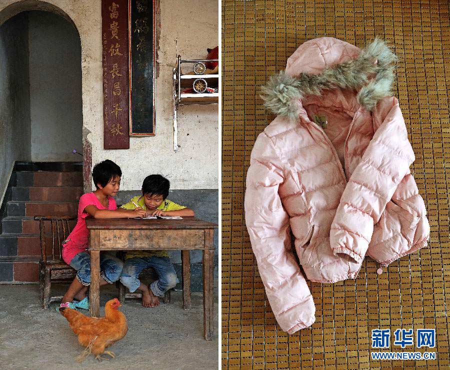 Right picture: The new clothes for Ding Niqin from their parents. (Xinhua/Zhou Mi)