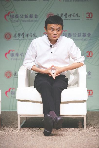 Jack Ma, the founder and CEO of Alibaba Group, gives a commencement speech to students who will get Master Degree of Public Welfare years later from the Peking University on Sept.15, 2015. (Photo/CNS)