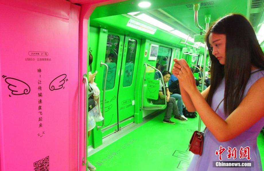 Smiling faces of cartoon characters such as Doraemon, Crayon Shin-chan, and Hello Kitty appear in Subway Line 3 in Nanjing, Jiangsu province on Thursday.