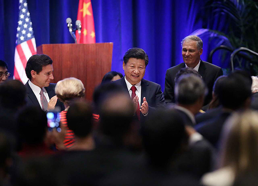 Chinese President Xi Jinping gets warm welcome from Washington State government and friendly communities in Seattle, the United States, Sept. 22, 2015. Xi arrived in this east Pacific coast city on Tuesday morning for his first state visit to the U.S.