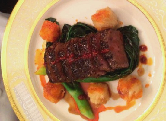 For dessert, they'll have a poppyseed bread and butter pudding. Chinese touches include the Shaoxing wine served with the soup and the lychee sorbet that is part of the dessert course. Besides, pumpkin moon cakes were served as well for the upcoming traditional Chinese festival—Mid-autumn festival. The chefs said they used Chinese and American flavors and drew inspiration from autumn.