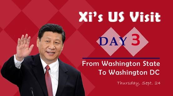 Xi Jinping receives a warm welcome from oversea Chinese in Washington DC.