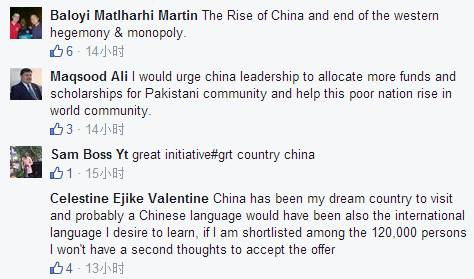 “Thumb up for the Chinese government," Stephen Njoroge commented on the official Facebook account of People's Daily. Toyin Abiodun expressed the same idea, "Phew! It's a relief to see another super-power emerging in world politics.” Hammed Ayo said, "Great people with great ideas."