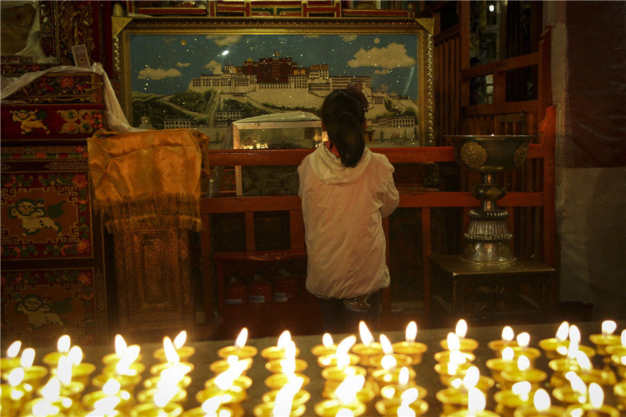 A tourist at Drepung Monastery. [Photo By Wang Zhuangfei / China Daily]