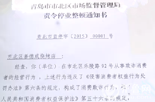 The Price Bureau in Qingdao announced on its official Sina Weibo account on Tuesday night that the restaurant was involved in misleading customers and its license was suspended.