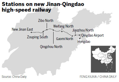 High-speed rail lines running through the station will shorten journey times from Qingdao to Jinan, Shandong's capital, to one hour instead of the current 2.5 hours. And it will take less than 3 hours to reach Beijing or Shanghai, from the current 5.5 hours and 6 hours respectively.