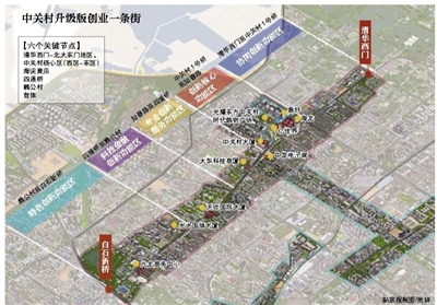 The areas along the street will be divided into five characteristic functional sections, according to an official from the Administrative Committee of Zhongguancun Science Park.
