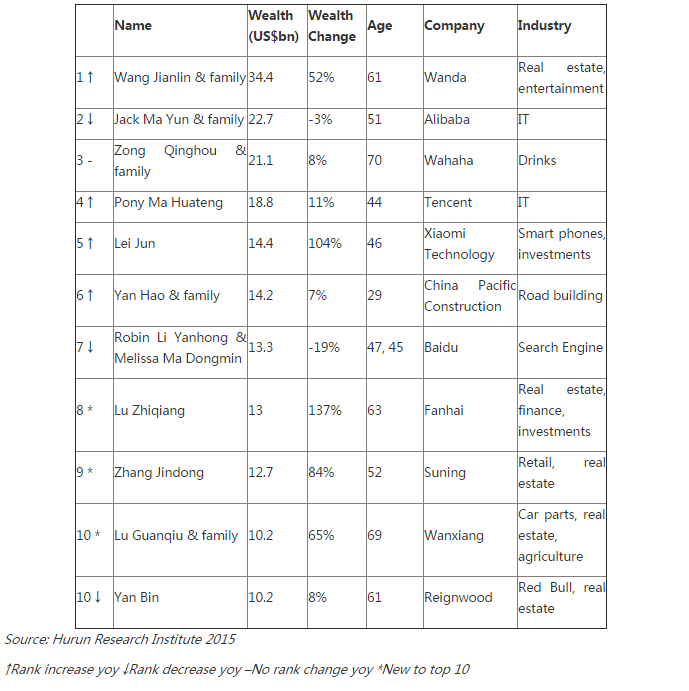 Wang Jianlin of Wanda overtakes Jack Ma of Alibaba to become the wealthiest person in the mainland after his wealth surged 52 per cent to 220 billion yuan (USD 34.4 billion), according to Hurun Rich List 2015 released on Thursday.