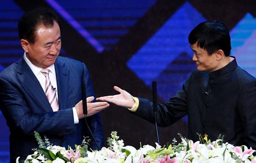 Wang Jianllin (L) and Jack Ma (R) (File photo)
