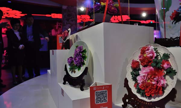 Handcrafts displayed in “Characteristic Chinese Heze Pavilion” (Photo provided to People's Daily Online by Jin Liangkuai)
