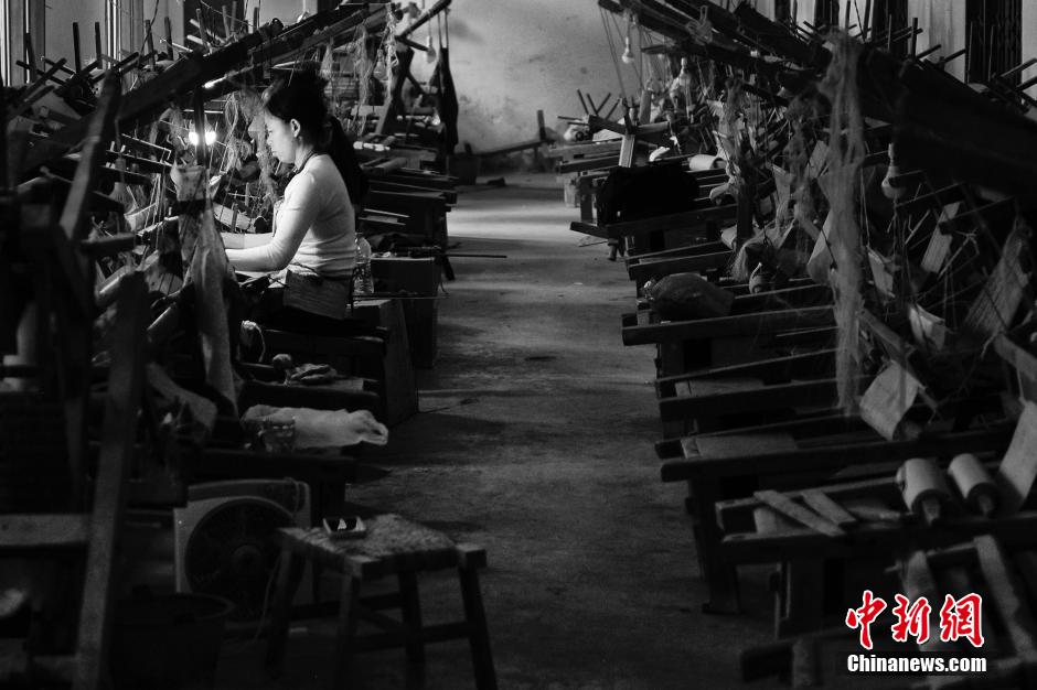 A worker weaves in a company in Panlong Town, Rongchang District in Chongqing. (Chinanews/Liao Pan)