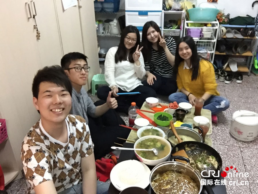Nishida eats with Chinese classmates in dormitory. (Photo/Cri.cn)