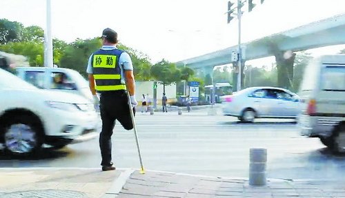 In April, he applied to be a volunteer officer in the traffic police. Considering his special condition, the police department rejected him. Xie Qiming kept on applying. He said that as a victim of a traffic accident himself, his experience could better remind people to abide by traffic laws and drive safely. The traffic police department eventually approved Xie’s application. Later a video clip of Xie on duty was uploaded online, and millions of netizens “liked” the video and respected Xie for doing a good deed.